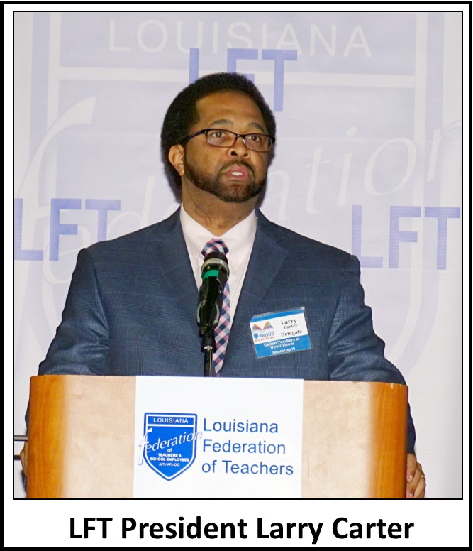 LFT President Larry Carter, elected to his first full term in office, roused the nearly 200 delegates with his vision for the role of the Federation and the future of public education in Louisiana.